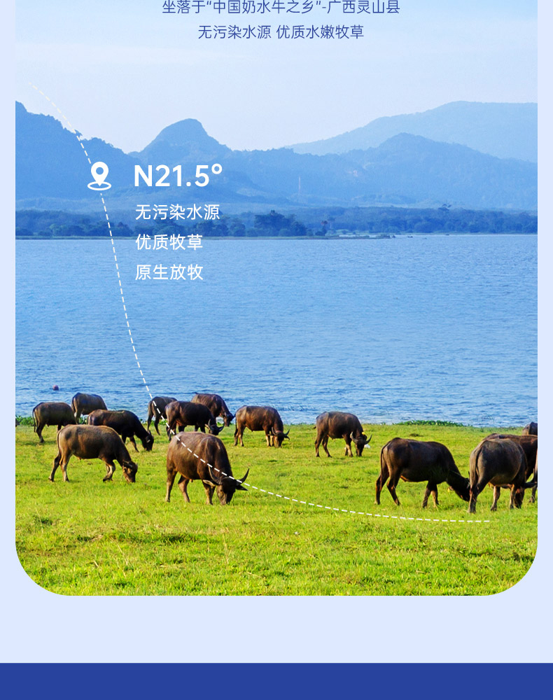 專屬牧場,自由放牧:坐落于“中國奶水牛之鄉"-廣西靈山縣,無污染水源,優質水嫩牧草。
