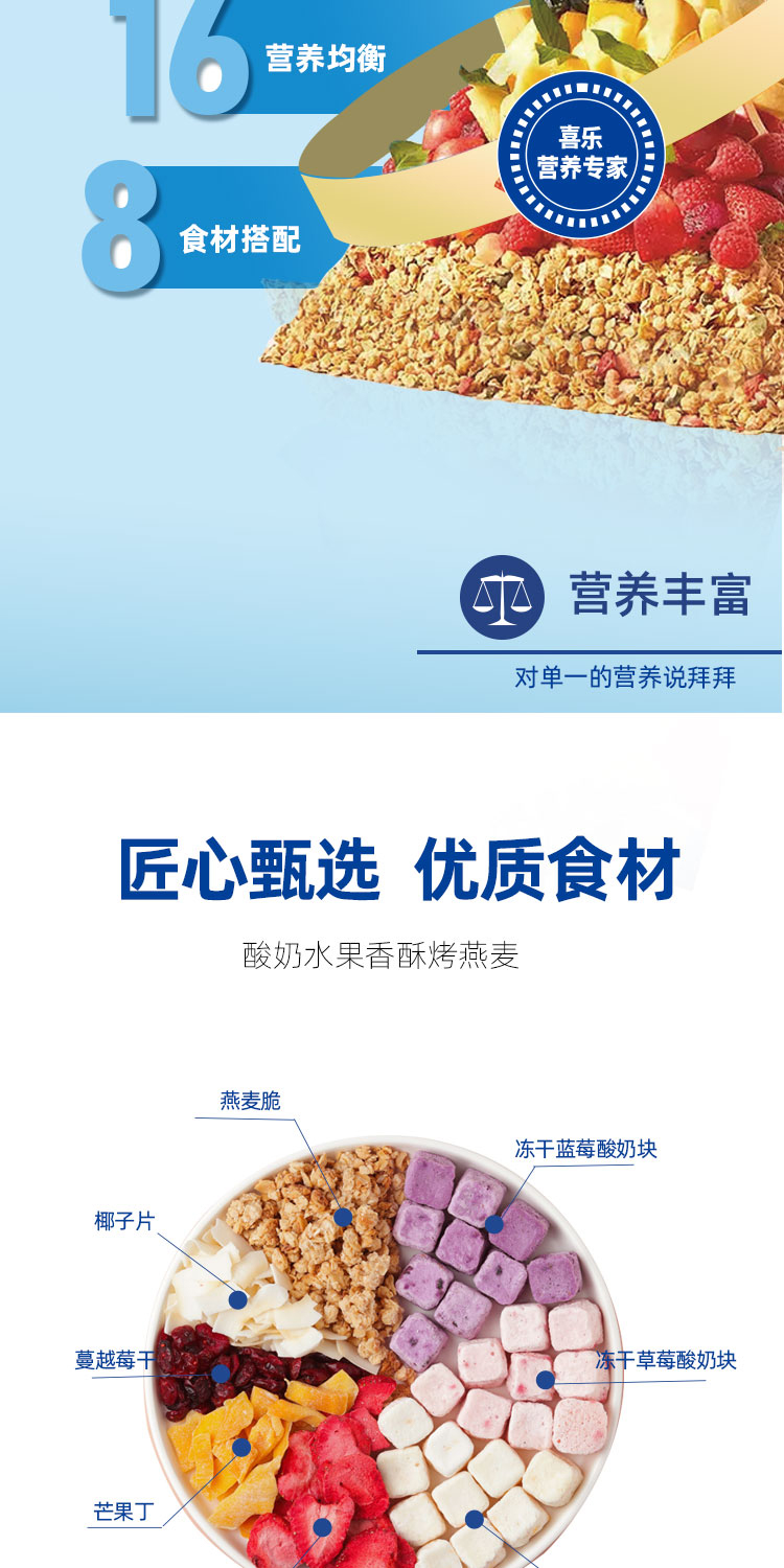 多種蔬菜果干:添加紫薯圈,香蕉片,草莓片,芒果丁,蔓越莓,椰子脆片,南瓜籽仁等多種果蔬干